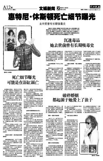 尽管目前惠特尼·休斯顿去世的原因还不明朗,但吸毒与酗酒令休斯顿失去唱歌优势,导致事业发展不顺畅的传言甚嚣尘上。不管吸毒是否与她的死因有关,论及惠特尼·休斯顿的人生成败,就不得不追溯她的吸毒人生。