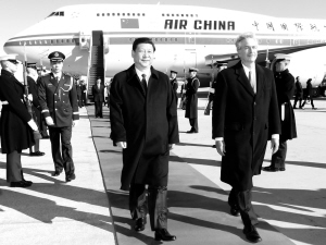 应美利坚合众国副总统拜登邀请,国家副主席习近平2月13日下午抵达华盛顿,开始对美国进行正式访问。当地时间2月13日下午2时20分(北京时间2月14日3时20分),习近平乘坐的包机降落在华盛顿安德鲁斯空军基地。中国驻美国大使张业遂登机迎请。按照日程,习近平将赴白宫与奥巴马会晤。