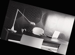 这个视觉游戏给一面安静的墙带来微妙的变化。壁纸肌理、图案独特,使得肃穆的黑色变得不再压抑、沉闷。