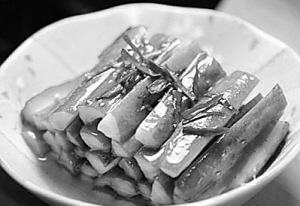 粗菜细吃,还可达到“废物利用”的目的。有人吃丝瓜要刨去皮,将丝瓜皮再切为细丝,精炒一盘,味道十分爽口。有一次,妻子买了一个西瓜回来,切开一看还是青的,显然西瓜还未成熟。一般情况下,人们都会将未熟的西瓜随手丢弃,但我却觉得如此实在是太可惜了。我略一筹划,便将未熟的西瓜切成小片片,放少许盐略为腌一下,让其脱液以去掉瓜片中的生涩味,然后再加入些许调料,很快便做成了一盘风味独特的凉菜。