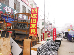烤甘蔗、口味繁多的豆浆、面皮麻辣烫米线、江米甜酒、烤面筋……昨日中午,记者在七一路与芙蓉路交叉口路南看到,琳琅满目的各种小吃摊林立在道路两旁,新修的道路显得拥挤而狭窄。几家卖烩面和蒸菜炒菜的小饭馆,不仅桌子“占领”了人行道,甚至“侵略”了快车道,而且塑料袋、一次性筷子、没吃完的残汤剩水一古脑地被弃在路边,和着刷锅水,搞得周边卫生一塌糊涂。记者沿该路一直向南,看到一片乱象:两旁的店家个个“不甘示弱”,都把经营回收的旧家具和钢木家具摆放在人行道上,放眼望去,各式沙发、桌子、板凳、货柜一应俱全,甚至有商家把招牌放到了快车道上。