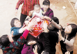 每年农历“二月二”的前一天,福建省莆田市城厢区泗华村的村民们都要集中到一起用豆腐和菜制作豆腐丸子。豆腐丸子经过晾晒后,被装在一个个塑料碗里,由村里的青年男子用托盘端着,供村民争抢。村民们将抢到的豆腐丸子带回家,在“二月二”这天煮了一家人一起吃,共同祈盼新一年团圆平安、事业红火。