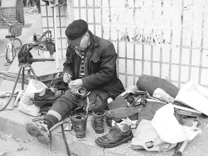 一位60多岁的残疾老人在街头摆摊修鞋。老人每天都拄着拐杖出摊,利用自己的手艺挣钱谋生,自食其力。每次看到老人,心里就油然而生一种敬意:他给我们诠释了什么是坚强。他就是生活中的强者,他不仅修鞋,也修补岁月,修补生活。   郸城县一高 王雪涛 摄