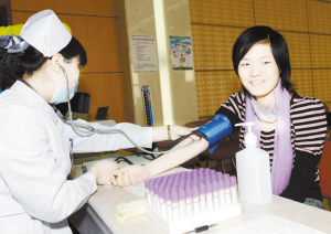 2月27日,国际象棋世界冠军侯逸凡(右)在献血前检查身体。当日是侯逸凡的18岁生日,她在母亲的陪同下来到北京市红十字血液中心,用无偿献血和捐献血样加入中华骨髓库的方式纪念人生中这一特殊的日子。