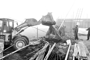 图为执法人员现场拆除一处“两违”建筑。