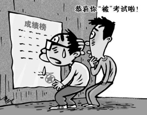 说起2月21日公布的贵州广播电视大学、贵州职业技术学院招聘考试成绩,蓝迪傲(化名)感到哭笑不得,在2月17日通过资格审查后,他迟迟未接到招考单位关于考试时间和地点的通知,也没有参加相关考试;但在4天后,他意外发现自己“不及格”的成绩出现在该次考试的成绩表上,成了晋级考生的“陪榜”。(据《中国青年报》)
