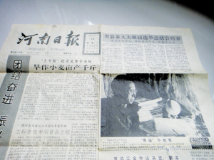 前年冬季的一个大雪天,我正在值班,突然接到肖老师的电话,想来报社给我送些资料。虽说好久没有见到他老人家了,我很是想念。可是,当时地冻天寒,滴水成冰。我们报社新址离肖老师家有十多里路,我不得不考虑他的安全。我说:“肖老师,天不好,路又远又滑,你没法来,下了班我去你家行吧。”老人再三回答:“没事,我打个出租车去。”他很坚决,我实在无法回绝一位老人的执著。 我给肖老师的女儿打个电话,说明情况,后来老人终于没来。原来,一家人都不知道他要来报社的事(可能是他怕家人阻拦)。他女儿破例给老人撒了谎,说“这两天报社工作忙,他们没有时间接待你”。如果不是这样,年逾七旬的老人一定会顶风冒雪,来到报社。听了女儿的话,老人有些失望,拿出一包东西,安排一定要尽快交给我。晚上回到家,我看到了那包东西。打开层层包裹的塑料袋,里面是一张报纸——2009年11月2日的《江西日报》。报上刊载有《大型情景歌舞<南山人>轰动北京》的消息,还有一张演出的节目单,一张江西名胜——天柱山的浏览优惠券。这是他特意委托老家的亲戚寄到周口的。我明白了,老人一定要给我送的就是这最好的精神食粮,他想让我汲取更多的营养,办好周口的报纸。老人送的报纸、优惠券等,我至今仍好好地保存着。