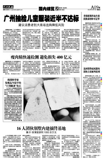广州抽检儿童服装近半不达标