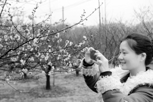 3月5日,一位游客在梅园里拍摄盛开的梅花。
