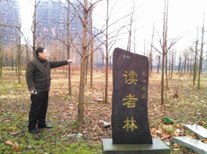 挖坑、栽树、填土、浇水……2004年3月13日,300多名晚报读者带着热情,将一片绿色的希望撒播在市民广场。2003年底《周口晚报》创刊,2004年的春季,晚报发起第一次植树活动,给小树林取名“读者林”。