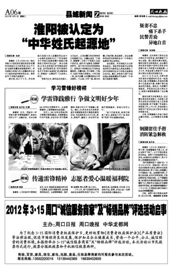 本报讯 3月3日至4日,“姓氏寻根与中原经济区建设高层论坛暨河南省姓氏文化研究会2012年年会”在淮阳县羲皇宾馆隆重举行。河南省姓氏祖地与名人里籍研究认定中心组织权威专家研究认定:淮阳县为“中华姓氏起源地”。