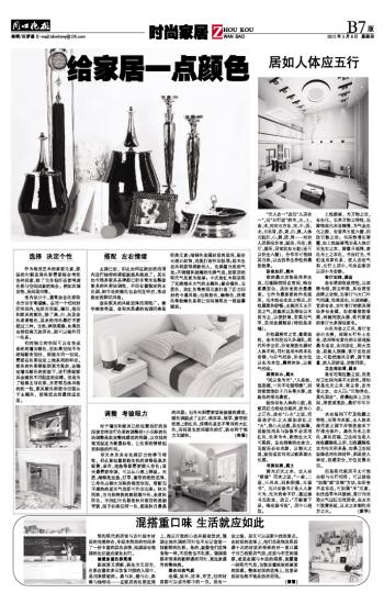 但是现代家居不太可能全部与五行相符,可以做些“加强”或“反制”方法,如卧室不在东边,可加强“木”元素,如挂些草木风景画,客厅向南恐火气过旺而克肺金,在玄关可放置鱼缸,以北之水制约南方之火。(新华)