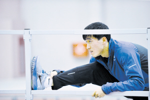 3月7日,中国选手刘翔在训练场热身。当日,中国代表队运动员全部抵达伊斯坦布尔并开始赛前训练备战。2012年国际田联室内世锦赛将在3月9日到11日在土耳其的伊斯坦布尔进行。
