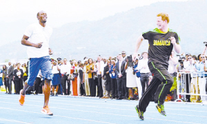 原本哈里王子和博尔特计划在牙买加首都金斯顿的西印度群岛大学体育场进行一场30米跑的竞赛,不过搞怪的哈里王子趁博尔特不注意,先跑出去,并且冲刺轻松夺冠。