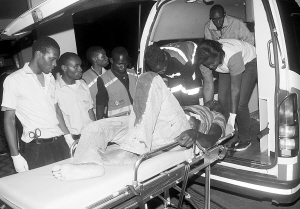 3月10日,在肯尼亚首都内罗毕,在爆炸中受伤的伤员被送往医院。