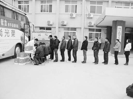 3月15日上午,西华县烟草局联合市中心血站举行学习雷锋献血活动,图为工作人员在排队献血。(记者 史书杰 摄)