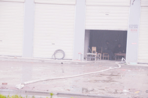 当日20时50分,记者再次来到亿丰君悦城小区东南角的这处门面房前,昏暗的白炽灯光下,3名男子坐在门前,马路旁边停靠着3辆水罐车,此时已经听不到往水罐车中灌水的声音。
