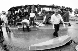 3月17日,在巴西米纳斯吉拉斯州费力珊迪亚市,工作人员在事故现场处理遇难者遗体。