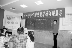 近日,六一路小学课堂教学研讨课展示拉开了帷幕。参加展示课的老师在授课中关注学生的学习方式和三维目标的有机结合,运用多种教学手段,帮助学生增加素养,课堂生动,气氛活跃,为全面提升该校课堂教学质量起到了推动作用。图为授课现场。