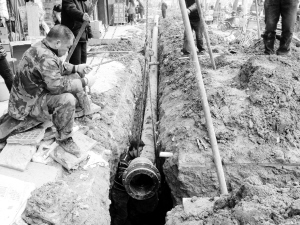 当日,记者在商水县章华台路、老城路和新城路等路段看到,工人们有的在挖沟,有的在铺管……“以往商水老城区住户家中停水后再来水时,会出现黄锈水和黑水现象,这主要是由于地下供水管道老化、生锈造成的。”该县自来水公司办公室负责人张刘伟说,工程完工后,这种情况将得到根本改变。