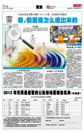 2012年市民最喜爱的公务接待酒候选名单(本地酒)