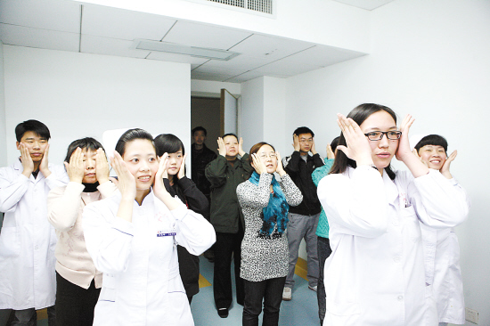世界睡眠日,你睡得好吗? 3月21日,在湖北省襄阳市第一人民医院,医护人员和患者同做睡眠保健操。当日是“世界睡眠日”,全国许多地方都开展宣传活动,引起人们对睡眠重要性和睡眠质量的关注。睡眠障碍对生活质量的负面影响很大,但相当多的病人没有得到合理的诊断和治疗。 新华社发