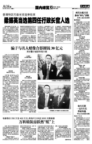 骗子与名人蜡像合影圈钱30亿元