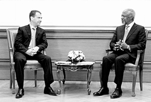 梅德韦杰夫告诉安南:“这或许是叙利亚避免持久、血腥内战的最后机会。我们会在每一个我方有发言权的阶段给予你全力支持。非常希望你的努力产生积极成果。”