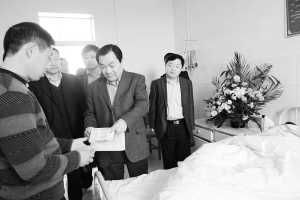 一进病房,王国玺就亲切地询问姐妹俩的病情,并拿出1万元慰问金,鼓励郑家姐妹安心治病,树立与病魔作斗争的勇气。