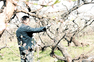 4月5日,工作人员在川汇区园艺场果园里劳作。近日,川汇区园艺场(生态园)果园里的桃花、李花、梨花竞相绽放,劳作的人们融入花的海洋,构成一幅幅动人的美景。