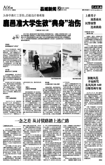 鹿邑准大学生欲“典身”治伤