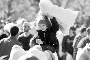 欧美多个城市4月7日上演一年一度的“枕头大战”,缓解紧张生活节奏和释放压力。活动目的在于让都市人不要每天坐在电视机或电脑前,而是到室外与其他人接触。 新华社发
