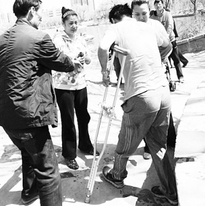 救人的男子上岸后,重新拄拐离开,对于落水女子及其同伴的道谢,只表示“不要放在心上”,并不愿留下自己的姓名。 (于新京)
