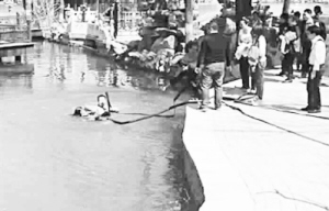 本报综合消息 4月8日下午,一年轻女子不慎落入北京龙潭湖公园的水中,岸上同伴不停呼救。途经此地的一位拄拐男子见状纵身跃入水中,将该落水女子捞出……上岸后,拄拐男子没有留下姓名就离开,游人用照相机拍下这一幕。