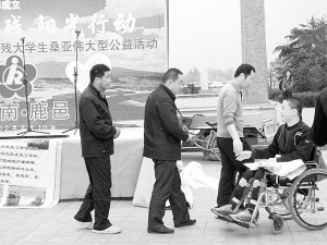 本报讯 4月6日本报A06版刊发《鹿邑准大学生欲“典身”治伤》一文后,在社会各界引起强烈反响。报道刊发当日,桑亚伟的母校便派人到其家中进行了慰问。4月10日,鹿邑县志愿者专门在鹿邑弘道苑广场为桑亚伟举行了爱心捐献活动。