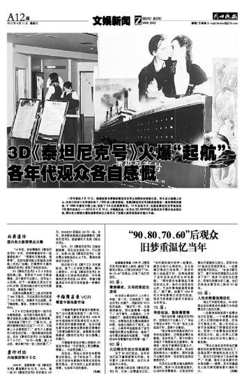 3D《泰坦尼克号》火爆“起航” 各年代观众各自感慨