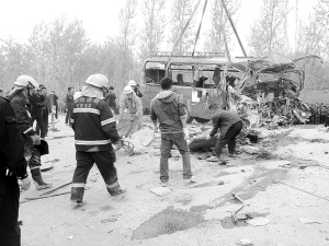 据宿州市消防支队前往现场救援的有关负责人唐尧介绍,当时一辆本地牌照的装载细沙的大型货车与一辆小型中巴客车在相撞后已经变成同向。大货车头部严重变形,半个车身栽进路边的沟中,中巴客车也变形严重。他们本着人道主义的精神,不管车中人员是死亡还是受伤,必须先把人救出来,才能动用大型机械。消防人员历时3个多小时从客车上抢救出多名死伤乘客。