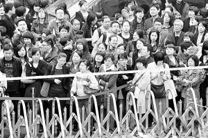 4月14日是杭州民办小学招生正式报名的日子,杭州锦绣·育才中学附小校门外挤满了前来为孩子报名的家长。