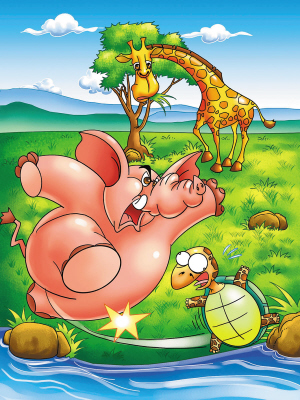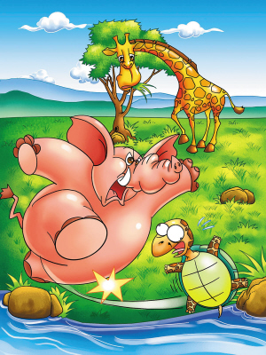在靠近丛林的一条小河边,一只大象正在喝水,忽然,他看见了一只乌龟正在河边睡觉,嘴里还自言自语,大象愤怒的走过去,一脚就把乌龟踢到了对岸。