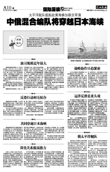 俄媒评论说:“从此次演习的规模可以看出,中俄两个大国间的军事合作正在迅速升温。”