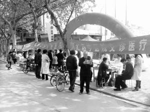 今年是爱国卫生运动60周年,4月又是我国第24个爱国卫生月。4月17日上午,川汇区爱卫办组织区中医院、区妇幼保健院等7家医疗部门在中州大道科技市场门前设立咨询台,接受群众咨询,免费为群众义诊,积极向他们宣传相关的卫生健康知识。 晚报记者 张志新 摄 线索提供 樊葩菡 张丽