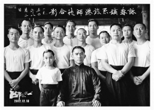 公布档期的同时曝光了一张梁朝伟版叶问师徒合影。照片中梁朝伟黑衣长衫,端坐在一群徒弟中间。从照片上透露的时间和“咏春嫡系旅港师徒合影”的题字来看,此时的叶问已经经历过人生的起起伏伏,赴香港开馆授徒。