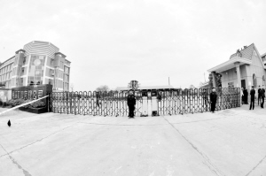 4月17日拍摄的被查封的江西省弋阳县龟峰明胶公司大门。