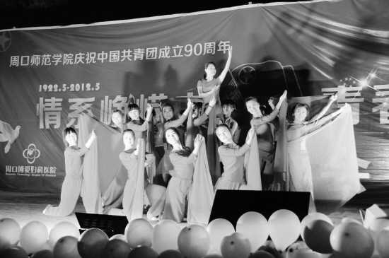 近期,周口师范学院团委以“情系峥嵘史,青春新征程”为主题,在校园内开展系列活动,庆祝中国共产主义青年团成立90周年。图为周口师范学院举办庆祝中国共产主义青年团成立90周年晚会。晚报记者 宋风 摄 线索提供 轩欣