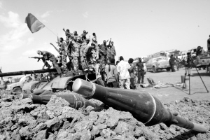 4月23日,在苏丹哈季利季油田,一些苏丹士兵站在一辆被炮火打坏的南苏丹坦克上庆祝胜利。 根据海牙国际法院2009年的裁决,位于苏丹和南苏丹边界北侧的哈季利季油田属于苏丹领土。南苏丹政府上月宣布哈季利季油田属于南苏丹,南苏丹军队于本月10日占据了该油田。苏丹军队20日以武力收复了哈季利季油田。 新华社发