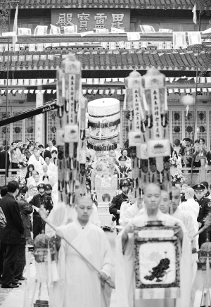 4月25日,佛顶骨舍利在香港佛教联合会迎请团及南京护送团的护送下由南京栖霞寺出发前往香港。