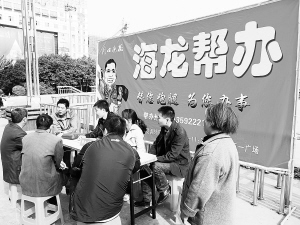 本报讯 昨天8时许,《海龙帮办》与读者面对面活动如期在周口五一劳动广场举行(如图)。当天上午,帮办现场共接待20余名市民来访,市民反映的问题以法律咨询、消费投诉、工资纠纷为主,《海龙帮办》已将受理事项分派给每个帮办记者,五一小长假期间,将逐一为市民帮办。