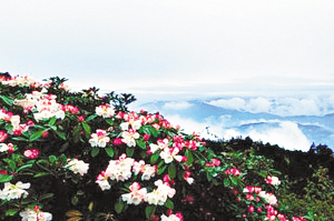 到峨眉山观赏杜鹃,4月至6月是最佳季节,一坡坡,一片片,路旁谷边,高低远近,从山顶一泻而下,纵目眺望,花海荡漾,香气浮动。峨眉山杜鹃花品种繁多,色彩各异,千姿百态。最先盛开的是九老洞、华严顶一带的“大钟杜鹃”,以早开、花大、色丽而蜚声国内外。每年阳春三月,冰雪渐消融,它就抢先独放于华严顶下。盛开在大乘寺、雷洞坪、弓背山一带的“美容杜鹃”,俗称“美人红”,以叶大花繁色艳而冠压群芳,有“杜鹃皇后”之誉。最摄人心魄的是开在云海之上悬崖边的“艳丽杜鹃”,祥云在脚下忽聚忽散,杜鹃在身边灿烂地绽放,游人会觉得自己仿佛置身于神仙的后花园。