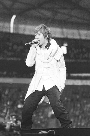 4月29日晚的最后,阿信干脆脱掉鞋袜,赤脚在舞台上蹦跶,兴奋高呼:“我真的踏在鸟巢上”。(张漪)