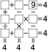 请将1至8填入右图空格,使其中3个横行算式和3个竖列算式都成立。(不考虑“先加减后乘除”的运算规则)